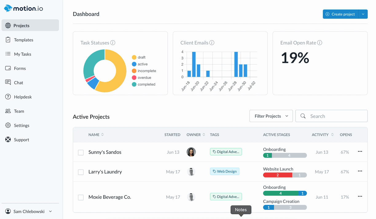 In addition to our improvements to LaunchBay's Internal Task functionality, you can now create private notes associated with each client project that only you and your team members can access.