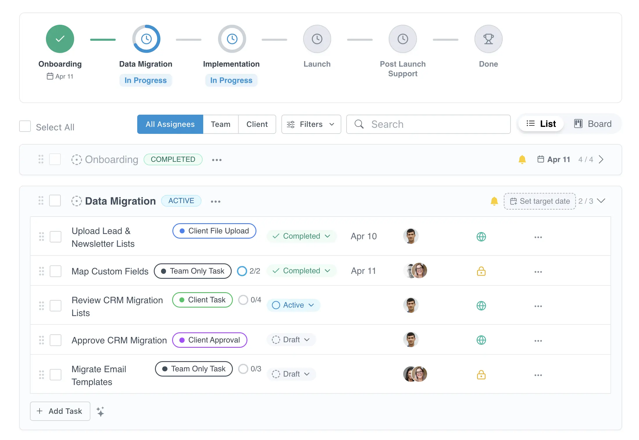 Replace scattered tools with one platform for onboarding clients, coordinating work, and delivering a better client experience.