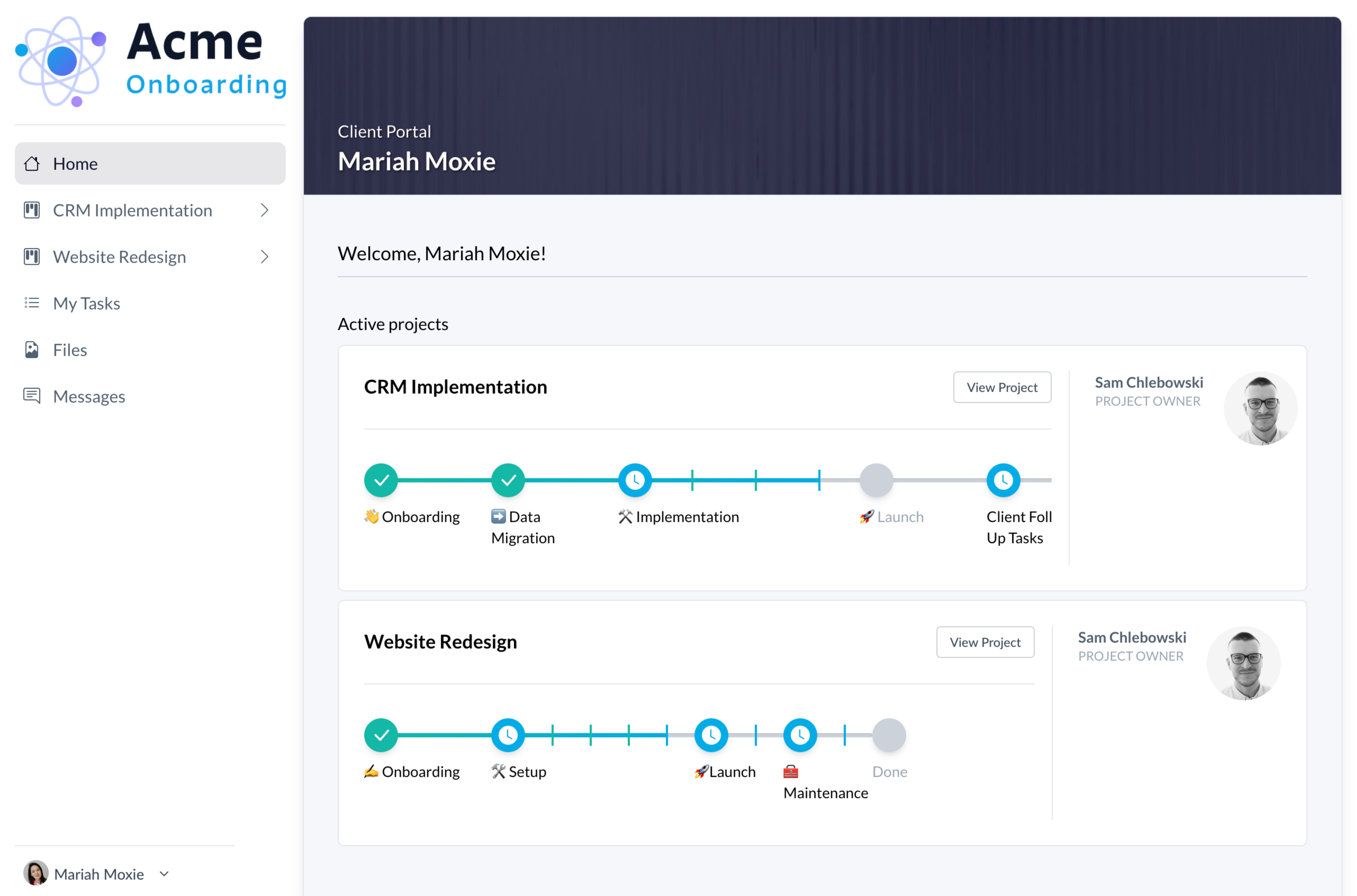 Clients land in their portal and immediately know what to do next. Tasks, progress, and updates are all surfaced exactly where they need to be.